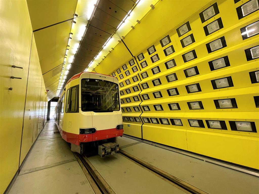 Entschieden hat sich DSW21 schließlich für eine Doppelverglasung und eine in der Nahverkehrsbranche einzigartige Dämmung. In Wien wurde der so ausgestattete B-Wagen Anfang Juli auf Herz und Nieren gecheckt – in einem speziellen Klimakanal, der sämtliche Witterungsbedingungen, Fahrt- und Windgeschwindigkeiten simulieren kann. Die Ergebnisse waren im wahrsten Sinne des Wortes bahnbrechend und übertrafen die formulierten Anforderungen noch.